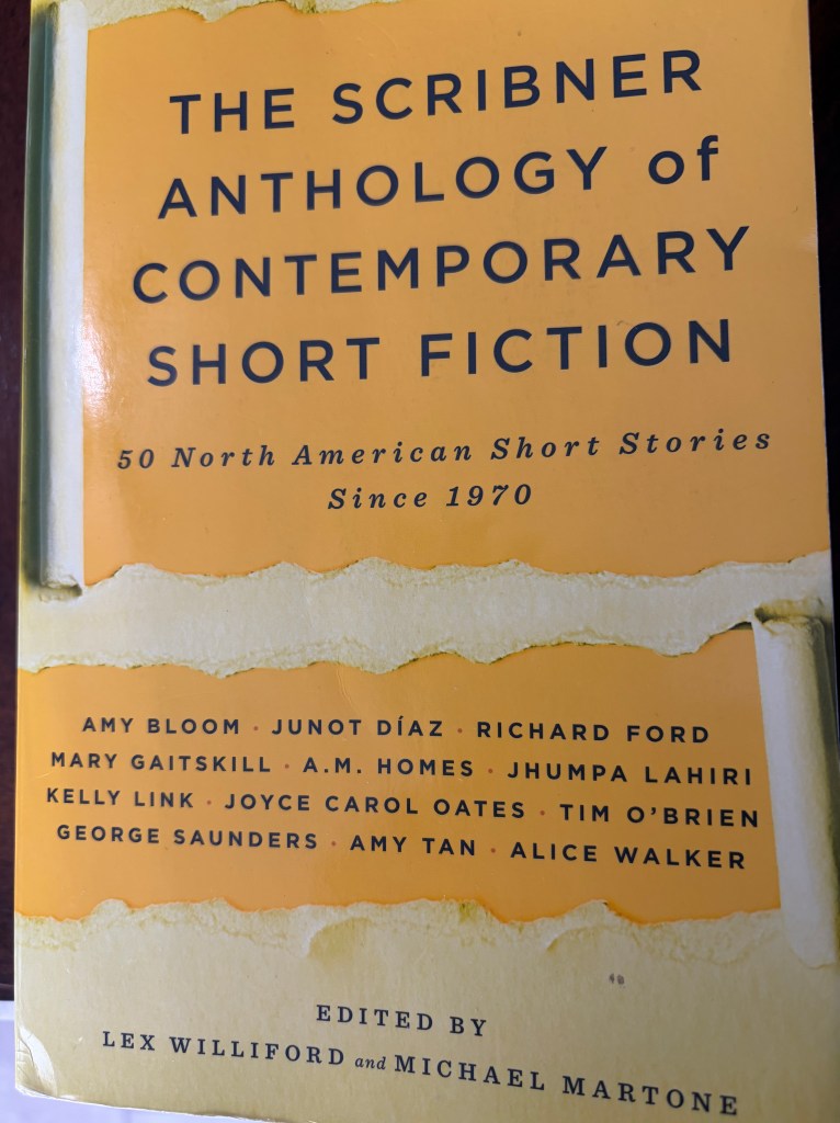 11:35 PM: An hour and ten minutes have passed and now I shifted gears into reading a different book: The Scribner Anthology of Contemporary Short Fiction – 50 North American Short Stories Since 1970. Mainly this book is for my ENG 352 Short Story class I’m taking online. I must read a collection of about four short stories every week because I have quizzes and discussion assignments due every Tuesday. As a matter of fact, I have three assignments coming this Tuesday. Having to remember multiple short stories at once is bit of a challenge since there’s so many small details to remember. I might get exhausted after this.